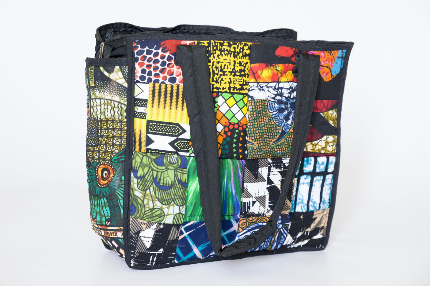 Nuestros bolsos son el alma de la tienda. Hechos con telas wax africanas, combinan colores vibrantes y diseños únicos